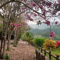 而當你踏上 瑞田水岸步道,便會發現一條沿著河岸彎曲前行的 九重葛花道,像是村子悄悄為旅人鋪好的彩色書籤。晴天時,陽光把花瓣照得透亮,粉、紫、桃紅像灑在空氣裡的顏料;